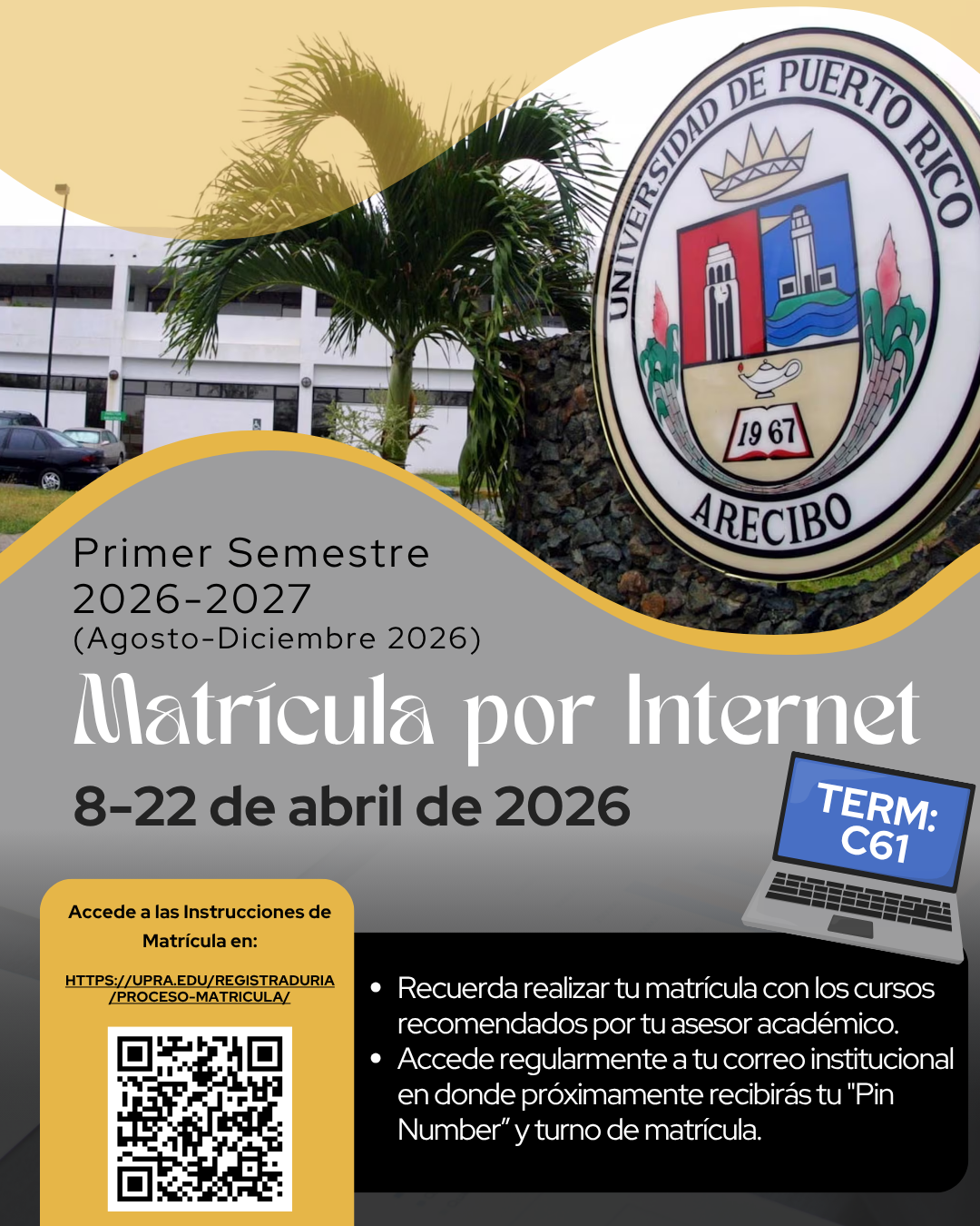 (Para hacer matricula para el Primer Semestre 2026-2027 el TERM = C61)